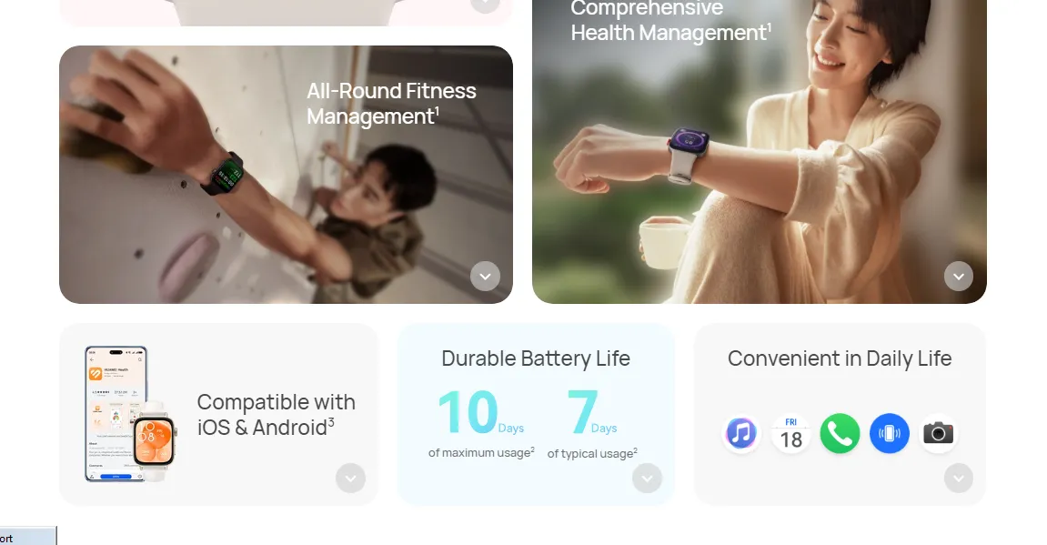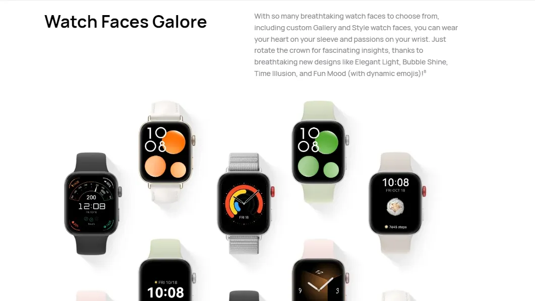• Sensors: 9-axis IMU sensor (Accelerometer sensor, Gyroscope sensor, Magnetometer sensor), Optical heart rate sensor, Ambient light sensor | Button: Rotating crown, Function button | Charging Port: Magnetic charging pin